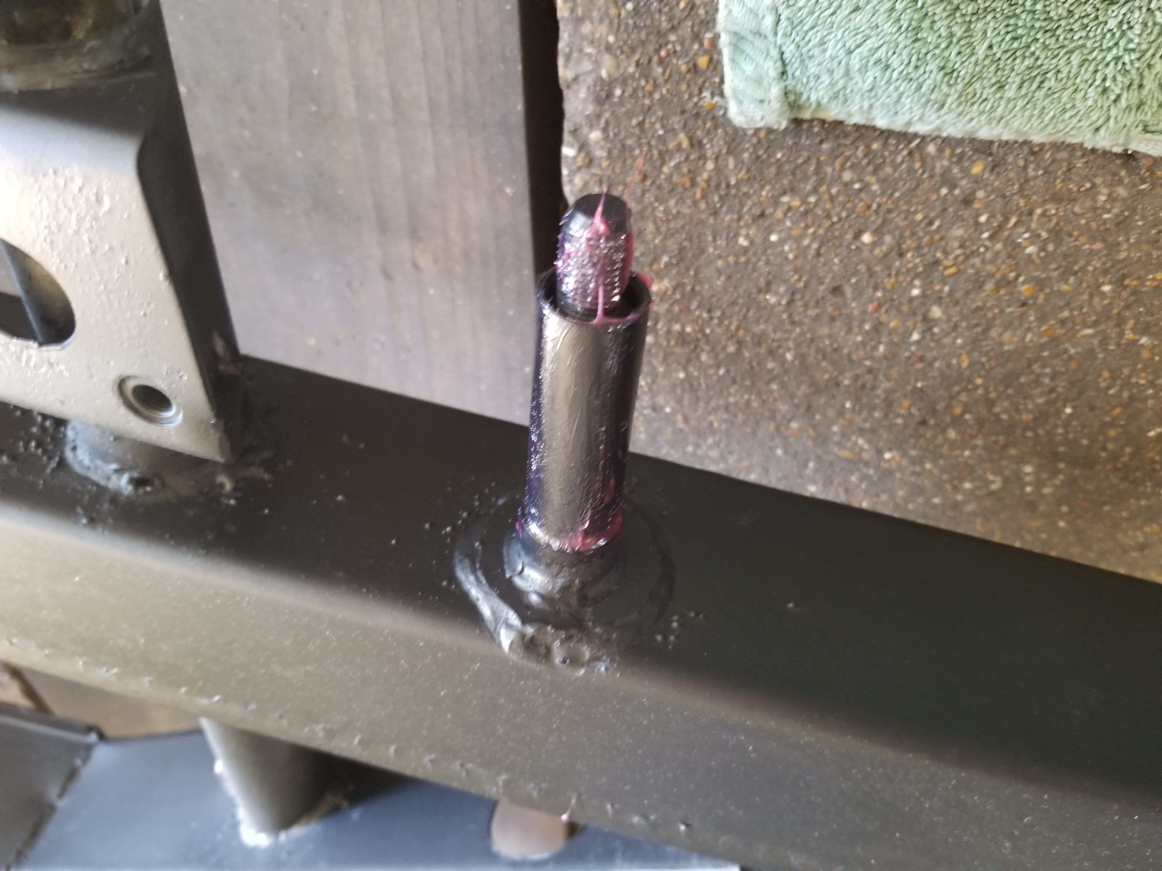 Took the cat apart, had the body and frame dipped in an organic derust. Painted the frame and went to put the leaf springs on. Uh oh. Looks like the steel part of that bush didn't come off.